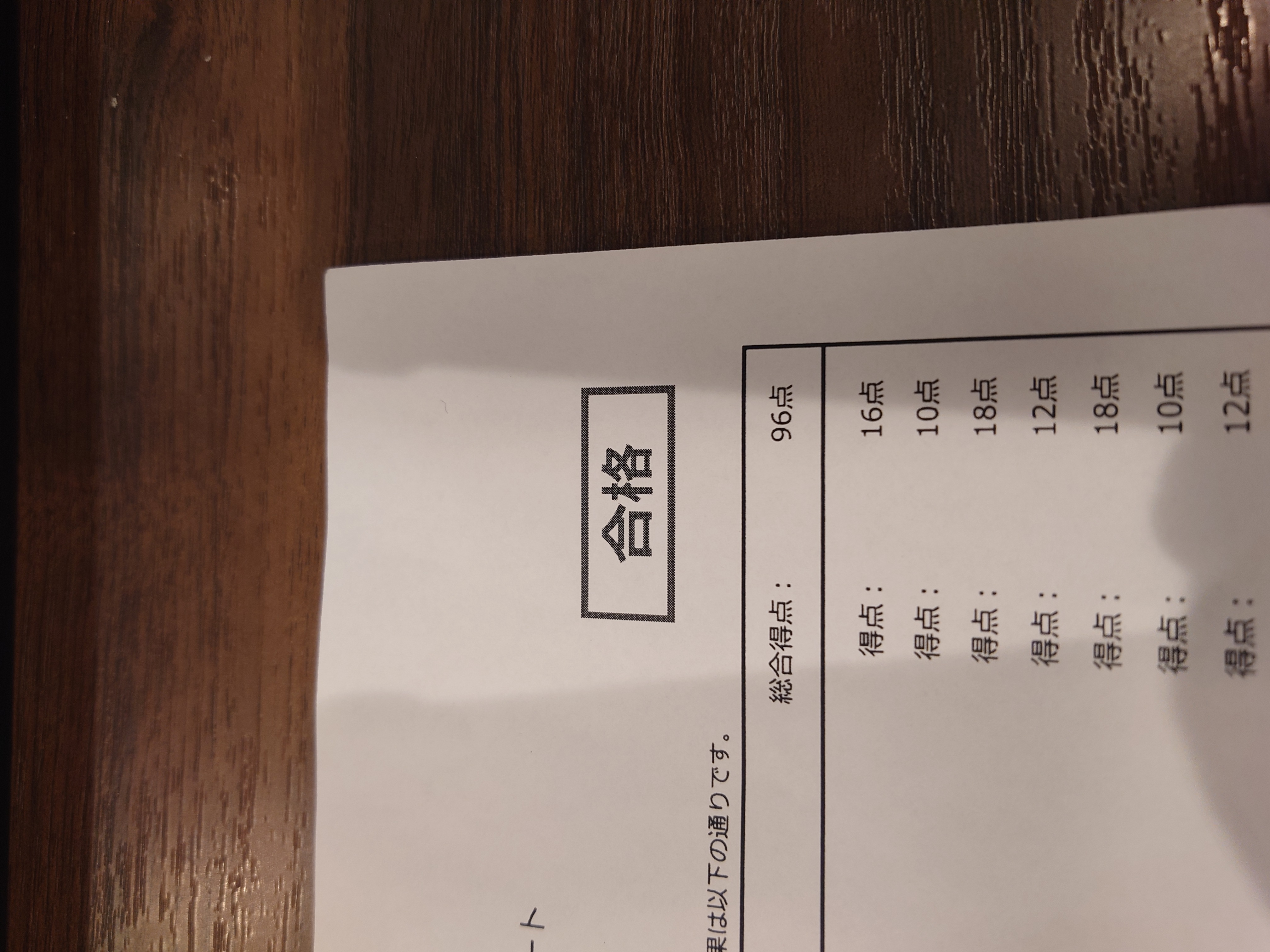 結果がその場ですぐわかるのがCBT試験のよい(あるいは味気ない)ところ。勘で答えた問題がいくつか正解していたようで、結果は96点と予想以上の高得点だった。