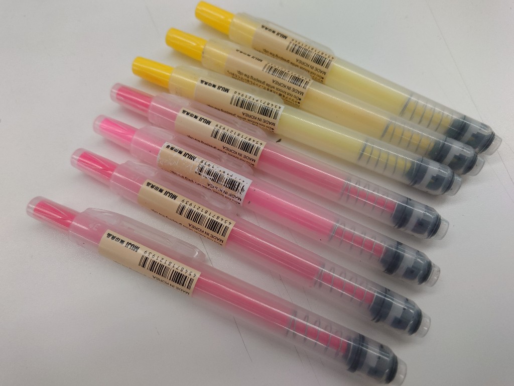 この蛍光ペンのよいところは、ノック式で蓋がいらないことに加えて、リフィルを交換できることだ。実のところ、インク自体はすぐになくなってしまう(根を詰めて試験の勉強をしていたときなど、一日でなくなってしまうことも珍しくなかった)ので、私にとってリフィルは必携である。 What I really like about this highlighter is not only that it’s retractable—so there’s no need for a cap—but also that the refill can be replaced. The thing is, the ink itself runs out pretty quickly (back when I was cramming for exams, it wasn’t unusual for the ink to be gone in a single day), so having refills on hand is absolutely essential for me.