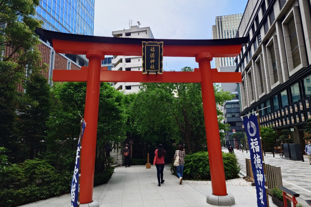 商売繁盛の稲荷、福徳神社。宝くじの当選祈願で知られている。 Fukutoku Shrine, an Inari Shrine known for business prosperity. It is famous for prayers for winning the lottery.