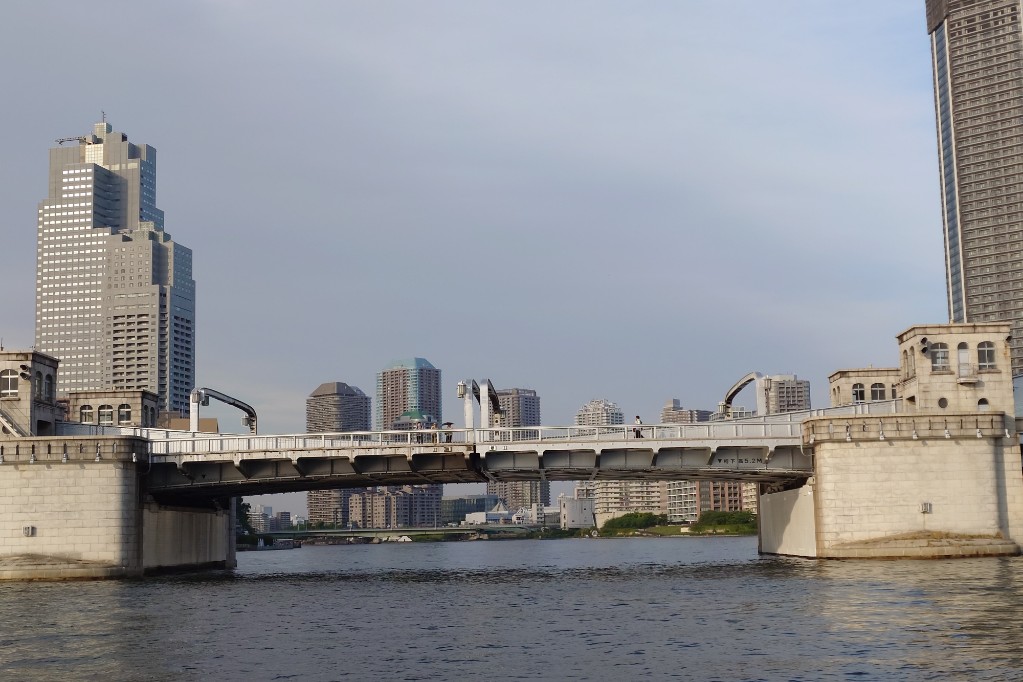 勝鬨橋は重文に指定されている。中央から跳ね上がる構造だが、1970年を最後に開いていないそうだ。 Kachidoki Bridge is designated an important cultural property. It features a bascule (drawbridge) structure, but it hasn’t been raised since 1970.