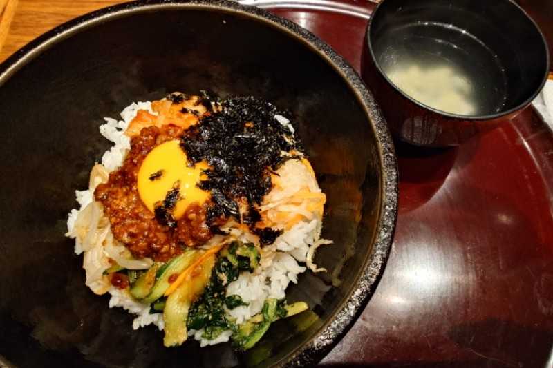 英会話の帰りに韓国料理屋でランチ。ダイダイ渋谷ストリーム店のビビンバ。店員は不愛想だが、料理は結構美味しいと思った。 After my English conversation class, I had lunch at a Korean restaurant, Daidai Shibuya Stream. I ordered bibimbap. The staff were a bit unfriendly, but I thought the food was quite good.