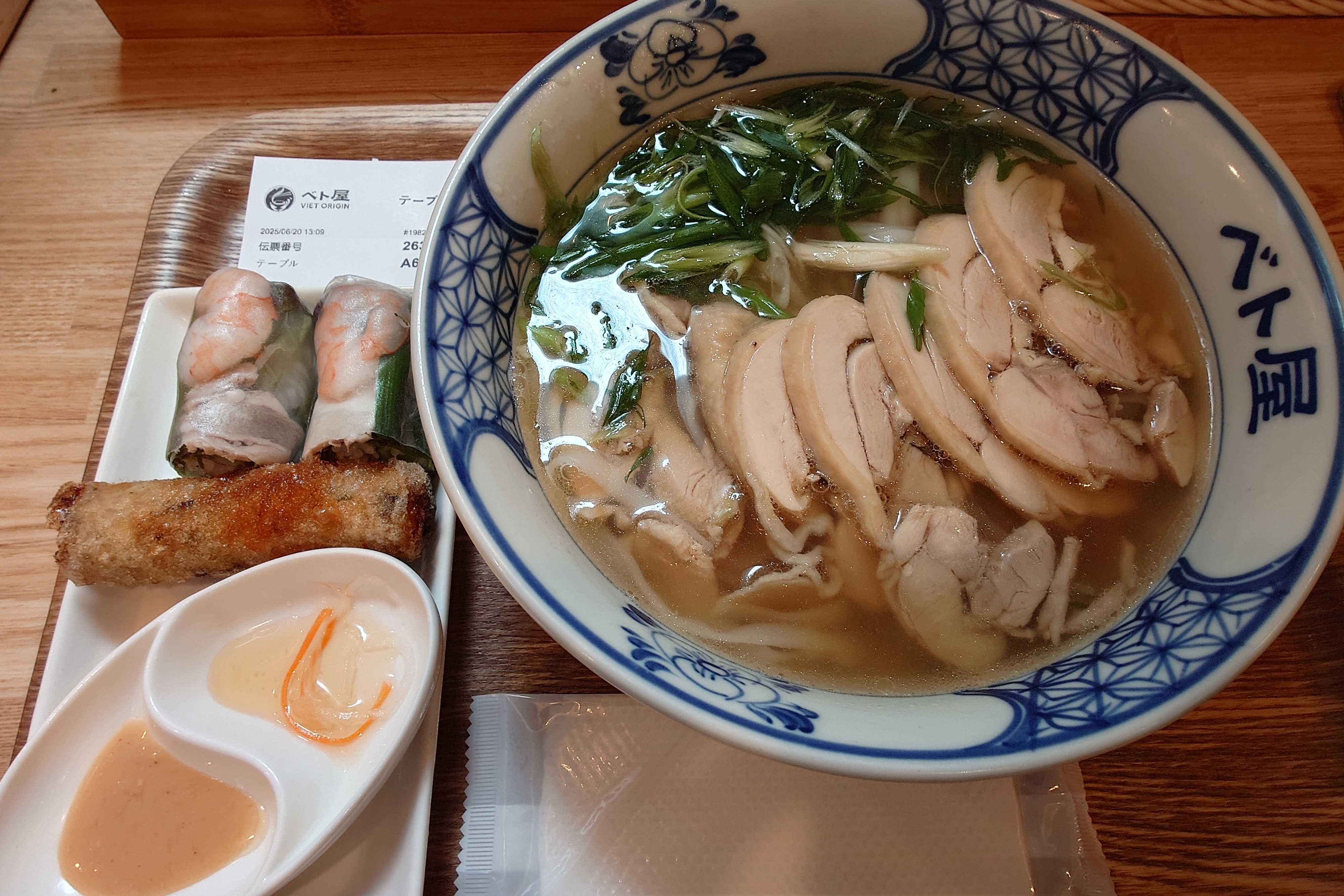 ベト屋 の鶏肉のフォーと春巻きのセット。フォーだけだと量的に物足りないが、春巻きまで注文すると値段がかなり高くなってしまって悩ましい。ちなみに店内は女性客比率が異常なくらい高い。