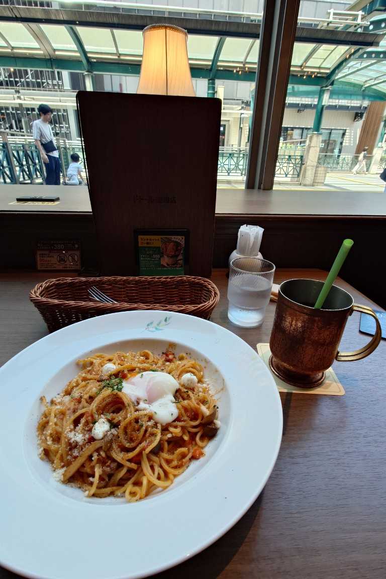 After visiting Okunitama Shrine, I enjoyed a relaxed lunch at Doutor in Fuchu . The pasta was chewy and satisfying, though the price was on the higher side.