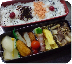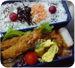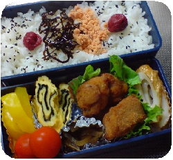 今日のお弁当♪・チキンカツ・白身魚&タルタルソースのフライ(冷食)・卵焼き・かぼちゃの煮物・漬物・ミニトマト----------------------------------今日からお弁当開始。今回(8月)の異動で、夫の出勤が30分早くなった。朝の30分の違いは慣れるまでちょっとかかりそう。隣県への高速バスでの長距離通勤、、私は朝食&お弁当作りで 遅くても5時20分には起きないといけない。9日から昨日までの長い休暇で今朝は休みボケ? 手際が悪くてなんかもたもた^^;