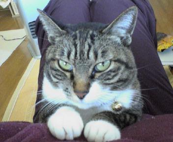 家族で夕食を食べていた時、テレビではアテネオリンピックのフィギュアスケートのダイジェストが流れていました。ぷーはみんながご飯を食べている時は、こたつの中に潜り込むかお外を黄昏て眺めるかが多いんですが、今日は少し温かかったからなのかこたつには入らず私の横に座っていました。いきなり走り出した!!と思ったらベシッ!!!!そこには華麗に舞う安藤美姫ちゃんが。。いつもはテレビに何が映ってても気にしないのにね。ひらひらとおもちゃが動いているように見えたのかしら。。。その後、幾度となく美姫ちゃんは我が家のぷーからパンチをくらっていました。ごめんね、美姫ちゃん。止めなくて。だって、面白かったんだも~ん!写真が間に合わなかったのが残念です。。 なので今日は男前な流し目で許してちょ 私、おんなのこなんですけど(怒)