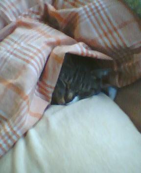 今日は、我が家にぷーにゃんがやってきた時のお話を少し…。 ぷーはのらにゃんでした。我が家からは少し遠い町でママネコと生活していました。その後、パンダのお友達が保護。私は一緒に生活したかったのだけれど、パンダのママに反対されていました。本当はパンダのママもにゃんこ大好きで、小さいころは一緒に暮らしていたそう。でも、死んでしまった時辛すぎるから、きっとパンダには耐えられないと思っていたみたい。でも、パンダももう大人。っていうか、オバちゃん?!お泊り保育という名目で、一時預かりしたのね。そしたら、もうパンダのママ、めろめろ(*^。^*)で、無事、我が家の一員となったのでした。それから、パンダの無知で、しばらく、お外にも出してたんだけど、ご近所にゃんこからいじめられちゃって、お尻に噛みつかれちゃったのね(T_T)その時、今まで予防接種の時とかに通ってた獣医さんのところから別なところに変えたんだけど、お外には出さないほうが、病気ももらわないからいいですよって教えて頂いて、今は完全室内飼いです。ぷーにゃん、ごめんね。。痛かったね。。 今日はぬくぬくだったねぇ~ そしてこの後 こうなりました。。。因みに、ぷーという名前の由来は、我が家にきた時、おなか壊してぷーばっかりしていたので、パンダママから命名されました☆