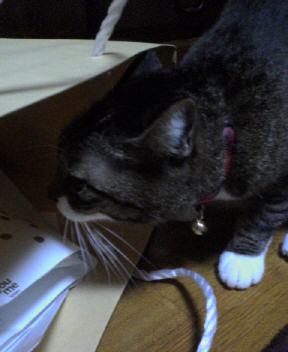 にゃんこってなぜだか狭いところが好きですよね~ぷーもなんですけど…で、かくれんぼがダイスキフムフム・・これは新顔だな。で、結局こういう事に(写真は別々のタイミングで撮りました。袋も違いますね~)そんなうるうるした目で見つめられると、そのまま持ち運びたくなるのでした