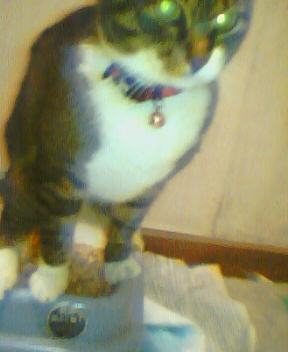 明日はお世話になった先生にあいに行く予定手土産は何がいいかな??と散々迷った挙句、時間あるし、自分で作ろうと思い立ってパウンドケーキを焼きました。因みにキャラメルバナナ味くるみ入りです。おみやげにもっていくので切り口がお見せできないのが残念。今度は自分用に焼こうっと。で、台所で作業していたら、目ざとく(鼻ざとく??)かぎつけてバタバタ走り回る影がある…じゃんじゃじゃ~んぷーにゃん登場よんだ~??よんでませんっていうか足短すぎ!!びっくりした~その後もにおいくんくんだけで、パウンドケーキはもらえず、ふてくされた結果、玄関にブツが。。。おそらくわざとではないと思うけど。たぶんオシリにくっついていっちゃったんだねぇ~因みにぷーは猫のくせにドタドタと大きな足音をさせて走り回ります。これって普通???