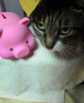 ぱんだの部屋のテレビの前にはブタさんの貯金箱が置いてあります。で、ぷーにゃんがなんだかモゾモゾやってるな~と思ったら、こうなってました(~_~;)ぱんだ「あら~、双子ちゃん??」ぷー「その言葉、そっくり帰す」いや~っっ…ごめんなさい…気を取り直して。。。先週、ぱんだママの○○回目の誕生日だったんだけど、家族みんな体調が悪かったので、休みが合った今日お祝いをしました。と言っても、ぱんだがバナナのパウンドケーキを焼いただけなんだけどね~食べてしまってから気が付いた!写真撮ってないや…と言うわけで、ぷータンから