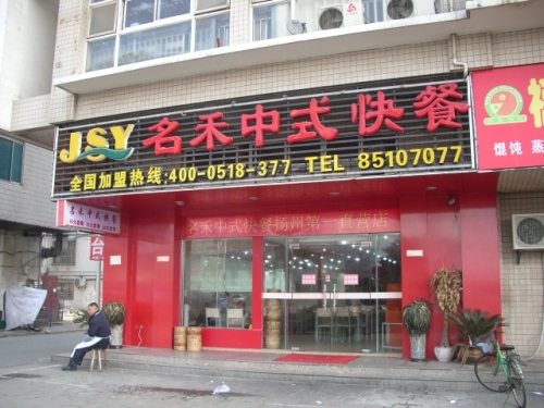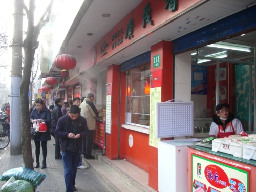 比較的安いところでしか食べていませんが、それでもおいしいと思う料理に出会いました。青島ビールは1本60円ぐらいと安いし、冷えてないですが。この寒い時期は、中国風に冷えてないビールを飲むのも慣れました。小さな大衆客の入るレストランだと、ビール1本に2品と御飯で30元(450円)前後で食べられます。頼む料理の種類にも寄りますが。料理は2人分以上はあるので、一人には多すぎます。日本ではダイエットで痩せ始めてきた途中でしたが、今回の旅行でかなり戻ったので、またやり直しです。中国はタイ同様、大衆レベルのレストランでもうまい料理が出てくるので、料理のレベルは高いと思います。中国にもチェーン店のレストランを見つけ2回食べました。このようなレストランだと、ビールに3品(豚肉料理、キノコ炒め、ナスの入った野菜炒め)と御飯で30元以下で食べられます。これでも一皿2人前ぐらいあります。揚州は揚州炒飯で有名ですが、街中でその名もずばり揚州炒飯という名前のレストランを見つけました。巨大な揚州のバスターミナルの隣には大きなデパートがあり、上の階には値段は少し高めですが、小奇麗なレストラン街がありました。上海の虹口区で入ったラーメン屋、あぶらげみたいのが入って4元(60円)でした。タイでは麺類が今35,40バーツですから、タイよりちょっと安いという感じか。もっとも牛肉などの具が入るとぐっと高くなります。中国のラーメンは日本のとは全然ちがいますが、私はこれはこれでおいしいと思います。