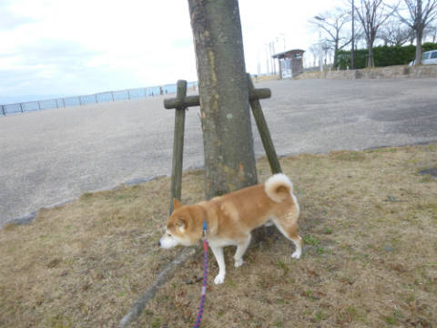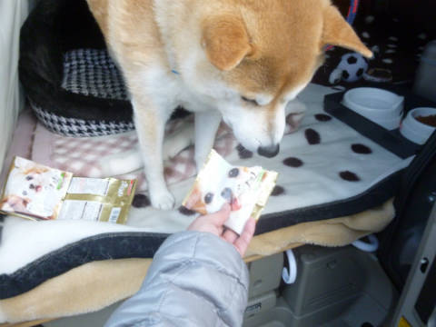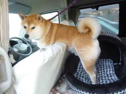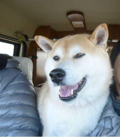 土山SAでお散歩今日は旅行記最終です。ビオナでランチブッフェを食べ終わったところからです。ゴンお待たせ~。では帰途につきます。ゴンも待ちくたびれたようで、ちょっとお疲れ気味。帰りの道中はこんな感じにグッタリでした。途中、土山SAで休憩。ここはすごく広い芝生があるのでお散歩には最適。ここでゆっくりお散歩休憩しました。人もたくさん散策していたし、ワンちゃんもたくさんお散歩していました。芝生は小高い丘になっていて、丘の上まで行きました。ここでゴンのご飯タイム。ガツガツと食欲満々でした。しっかり食べて、再度出発です。でもこのまま家に帰るわけではありません。この日は12月31日、大晦日でした。大晦日と言えば、、三重県では大イベントがあります。大晦日恒例のオールナイトパチンコです。三重県中のパチンコ店がオールナイトで営業し、それぞれの店が独自のイベントをします。私たちもつい帰りに運試しに立ち寄ってしまいました。もうおうちに帰れると思ったゴンも、もう1泊車中泊になってしまいました。疲れていたし、朝までは無理だな、と思っていたのですが、結局朝まで。気になる結果は、私はちょっとだけプラスでした。でもお父さんはホテルに1泊するくらいのマイナスでした。まぁ楽しかったし、ホテルに1泊したと思いましょう。あっ、この日の夕食は、駐車場に出されていた屋台で、焼きそばとかピラフとか唐揚げとかで済ませました。お昼にしっかり食べたのであまりお腹もすかなかったし。元旦に朝帰り。おうちに帰ってからは、ゴンはもうお疲れでグッタリ。寝不足だったんだよね~。1日寝っぱなしでした。これで年末旅行記は終了です。中断などして長くなりましたが、見ていただいてありがとうございました。また近いうちに、1月3連休に行った旅行記もアップしますね。最近、こちら地方でも早朝マイナスの気温が続いています。今日は早朝の気温、マイナス4度でした。昨日もそれくらいだったのかな。昨日実家の水道管が凍って破裂して水が流れていたそうで、近所の人が気づいて教えてくれました。すぐに水道屋さんに行ってもらいましたが。こんなこと初めてでビックリです。ではまた