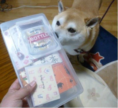 ありがとう~♪昨日、夕方散歩から帰って、ポストを見ると、ちょっと厚みのある封筒が。中身はこちらが入っていました。柴犬グッズをはじめとする可愛いものが色々。送ってくださったのは、柴々団団長はるちゃんのママ、わんこ堂さんです。この可愛い笑顔の柴犬さん、紙袋なのですが、紐を使って封をすることで、耳が立ったような形になるそうです。これは使うのが楽しみ~。そして、こちらの柴犬さんのカード、お腹をなでると柴犬の香りがするんですって。こすってみると・・・、ほんのりと。いつもゴンの香りをかいでいるけどまた違うような・・・。これはポチ袋なんだけど、メッセージを書くことができるんです。裏側。こちらにも柴犬さんが。可愛いですね。こちらは柴犬ソックス。ちょっとリアルな感じの柴犬さんです。今履くのにちょうどいい厚み。他には、文鳥とリスのポチ袋。これもまた可愛い~。美味しそうなお菓子まで。今日のコーヒータイムのおやつにしよう。わんこ堂さん、可愛くて珍しいもの色々ありがとう~。しばらくは見て楽しんで、大切に使わせていただきますね。ゴンですが、昨日の寝る前のおやつタイムです。ゴンの手の甲に乗っているのは大好物のささ身巻きガム。お父さんに手の甲に乗せられて待て中です。しばらく待たされて「よしっ」。大好物なのに結構長い時間待てました。偉かったね。ではまた