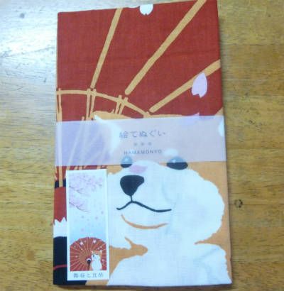 濱文様絵てぬぐい土曜日、いちご狩りに行った帰り、数件買い物に立ち寄ったのですが、とある書店にも寄りました。その書店は大きな店舗で、本の他に、雑貨も取り扱っていて、その雑貨売り場の一角に「濱文様」コーナーがありました。その中でこちらを発見。「舞桜と豆柴」というイラストの絵てぬぐい。今の時期にぴったりで素敵ですね。これは額縁に入れて飾りたい~。この柴犬の表情が何とも言えず可愛い~。ついやられちゃいました。そしてもう一点。柴犬ブックカバーも発見。これも可愛いですね。裏側。思いもよらないところでまたまた柴犬グッズゲットです。近いうちに絵てぬぐいのサイズの額縁がないか、ホームセンターを探してみよう。実はしまむらで新しい柴犬グッズが色々出ているという情報を得まして、書店の前に寄ってみたのですが、ゲットすることが出来ませんでした。ゲットできなくてガッカリしているときに見つけたので、嬉しさ倍増でした~。しまむらでも柴犬スリッパとか、キッチンマットとか、インテリアマットが出ているそうですよ~。買い物であちらこちらに連れまわされて、疲れてグッタリのゴンです。今日はお父さん平日休暇です。これから津市に行く所用があるのですが、その帰りに日帰り温泉に行く予定です。ではまた
