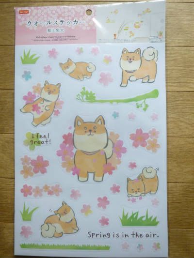 桜と柴犬先日、買い物に行ったとき、ダイソーに立ち寄ったのですが、そこでまたまた見つけちゃいました~。まず店内の一角が春バージョンに変わっていたところで、ウォールステッカー、「桜と柴犬」。この柴犬がちょっとふっくらして可愛い~。同じところで、フレークシール、「さくらしば犬」。中身はこちら。14種類がそれぞれ4枚ずつです。ウォールステッカーと同じ柴犬です。可愛いですね。そして、こちらはB5判サイズのノート。このアニマルパーティーシリーズも可愛いですね。またまた柴犬グッズ増えちゃいました~。そして、我が家の桜ですが、昨日も暖かかったことで一気につぼみが開き始めました。現在3分咲き、といったところでしょうか。ゴンも桜のお花見を楽しんでいます。桜の下をグルグル。元気いっぱいですよ~。また今年も公園の桜が咲いたら、ゴンと桜のコラボ写真、兆戦しますね。今日はこれからいちご狩り行ってきます。ではまた