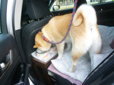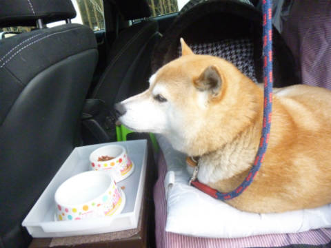 2日目のランチ昨日は丸1日京都に行っていました。帰りも遅くて、ゴンは朝7時半から夜9時半まで、14時間という超長いお留守番になってしまいました。昨日の京都での様子は、また旅行記のキリのいいところで、中断してアップしたいと思います。今日は旅行記の続きを。静波海岸をお散歩して、次の目的地に向かうところからです。次の目的地は富士山を観光です。途中にあった道の駅のようなところ。ここでトイレ休憩しました。トイレに行く途中にいた看板犬?甲斐犬です。お利口そうでカッコいいですね。ここは広い公園があって、お散歩するのによさそうなところでした。ドッグランもありました。時間があったらゴンを遊ばせたいところでしたが、2泊目のホテルにはドッグランがあるし、遅くなってしまうので先を急ぎます。目的地の山梨県、河口湖に到着。これから湖畔に富士山を見に行くのですが、その前に、ちょうどお昼でお腹が空いてきました。ということで腹ごしらえ。こちらのお店に入りました。「ほうとう不動」です。山梨県では有名なお店のようで、河口湖湖畔に2件ありました。私、ほうとうって食べたことなくて、今回初めて食べました。河口湖周辺にはほうとうのお店がすごくたくさんありました。ゴンには車で待機してもらいます。変わった建物ですね。では入ります。入ってすぐにちょっとした売店がありました。席はこんな感じ。相席で座ります。メニューはこちら。私たちは2人とも名物の「不動ほうとう」にしました。周りを見てもみなさんほうとうを食べていました。私たちが座ったのはこういう感じの席です。これが「不動ほうとう」です。鉄鍋にタップリ。すごいボリュームです。1080円です。スープは味噌ベース。野菜もたっぷりです。麺はうどんより太くてモチモチ感があります。さすが名物、美味しくいただきました。ほうとう不動の駐車場から見た富士山。ここからも十分綺麗に見えました。でもこの時は雲がちょっと多かったのですが、これがだんだん取れてきます。次は河口湖湖畔の公園で富士山を観光します。ではまた