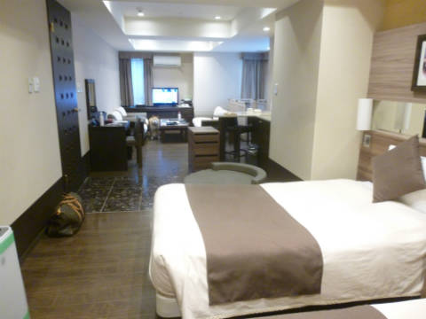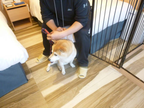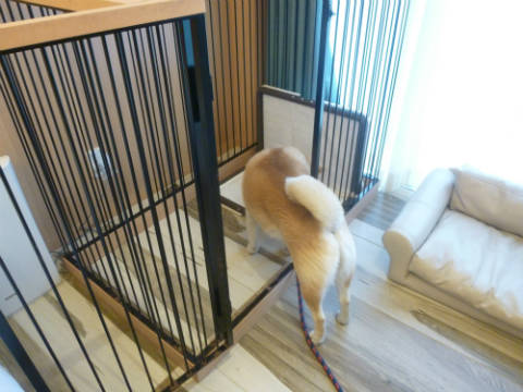 わんわんサーティールーム旅行記の続きです。軽井沢倶楽部 ホテル軽井沢1130に到着したところからです。なぜ「1130」なのかというと、ここの標高が1130メートルなのだそうです。なので少しヒンヤリ。今の時期だったら涼しくて最高かも。まずお父さんだけチェックインのためフロントへ。ここがホテルの入口です。チェックインを済ませ、私たちも中に入ります。私たちは別の入口から。裏側にワンコ同伴ルーム専用の出入口があります。足洗い場もあります。ここから出入りします。ここの鍵を渡され、出入りするときはその鍵を使います。車もこの出入口横に駐車させてもらえました。専用出入り口のすぐ前がワンコ同伴ルーム。リードで移動OKです。では入ります。奥行きがあります。入ってすぐのところにワンコが飛び出さないように仕切りがあります。お部屋は広々です。まずこちらはメインルームのリビング部分。そしてメインルームのベッドルーム部分。ちゃんとワンコ用ベッドもありますよ~。このワンコ用ベッド、大きくて、ゴンが寝ても余裕です。ここがお気に入りのゴンでした。そして、奥にもう一部屋。サブベッドルームです。4人が寝られるようになっています。この部屋は使いませんでした。メインルームの真ん中にミニキッチン。冷蔵庫とか湯沸かしポット、水道。お茶やステックコーヒーなどがたくさんありました。 洗面、バス。バスは温泉を利用したので使いませんでした。 トイレ。ワンコ用グッズも色々用意されていました。 リビング横に大きなケージ。この大きさならゴンも余裕で入ってくれます。お部屋に案内されて、スタッフさんに説明を受けている間、ゴンにはここにいてもらいました。すごく広くて、綺麗で、今まで泊まったワンコ同伴ルームの中で最高かも。2人で泊るにはもったいないくらいのお部屋でした。旅行記は今日はここまで。台風ですね~。進路を見ると我が町がちょうど直撃のようです。今のところまだ雨は降っていませんが、夕方ごろから雨風が強くなる予報。今日は夕方散歩早めに行かないと。ではまた
