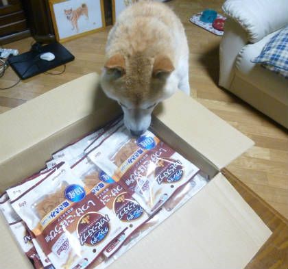 またいただきました♪昨日に引き続きまたまたいただき物です。昨日クロネコさんがやってきて、こちらいただきました~♪送ってくださったのは、柴々団団長はるちゃんのママ、わんこ堂さんです。先日もほうとうとか、珍しいものを色々送っていただいたのに、申し訳ないです~。このババロリア、先日わんこ堂さんがブログで紹介していて、今度大きなスーパーに行ったら探してみようと思っていました。ババロアが簡単に作れるんですって。近いうちに作ってみよう。上手にできたらアップしますね。そして、柴犬シールに、やわらかガーゼタオル。肌触りがよさそうな上質のタオルです。そしてゴンにまで。ゴン、これわんこ堂さんからだよ。砂肝はゴンの大好物。匂いをかいだだけで早くちょうだい、の舌ペロです。やわらかタイプだからシニアのゴンも食べやすそう。パクリモグモグ。美味しくいただきました~。この後もいつものフードにトッピングしてあげたらフードもペロリでした。ゴンよかったね。わんこ堂さん、いつも珍しいものありがとう~。ではまた