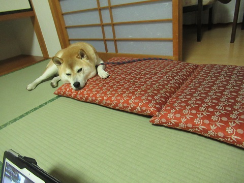 ドッグランでボール遊びロッキーでの滞在の続きです。そろそろご就寝の時間です。私たちはベッドルームに移動。ゴンはここでご就寝でした。2日目の朝です。朝散歩に出発。ロッキー前の道路を歩きました。朝の景色。朝散歩のあとは2度寝開始。私たちは朝食を。ツナサラダとウインナーとうなぎ。チェックアウトは10時。ギリギリまでまったりして、帰る準備をしているとゴンは玄関で待機。10時過ぎに掃除をしに来るので、それまでに退出です。10時に退出してドッグランへ。お父さん、ボールを持ってきてくれました。ボール遊び開始です。それっ。ちゃんと持ってきます。偉いぞゴン。もう1回。これを数回繰り返し。疲れるとボールを持って来なくなります。持ってきたらまた拾いに行かないといけないもんね。疲れたけど楽しかったね。では帰りましょう。帰ってからのゴンです。玄関のタイルにゴロン。暑いときはここがお気に入りです。タイルがヒンヤリして気持ちいいのかな?ロッキー、別荘気分で、たまに泊まりに行くのにいいところ。コロナの時期は特にこういうお泊りは安心ですね。ゴンも一緒に泊まれるし、また利用したいと思います。この時はまだGOTOトラベルキャンペーン前だったんだけど、鳥羽市が独自の割引クーポンを発行していて、半額で泊まれちゃいました。そして、次回の旅行記からは、GOTOトラベルキャンペーンを利用してのお泊りです。明日からは8月初旬に行った新たな旅行記を。少しだけ予告を。宿泊したお宿のお部屋。ドッグランにて。温泉。詳しくは明日から。