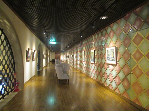川久の色々旅行記の続きです。今日は南紀白浜旅行記の最終。最後にホテル川久の館内色々を。川久の館内はミュージアムになっていて、宿泊客以外にも入館料1000円で見ることができます。もちろん宿泊客は無料。こちらは絵画ミュージアム。壁は陶芸家「加藤元男氏」制作の陶板が貼られています。絵画は、横山大観、マルク・シャガール、サルバドール・ダリ・などの作品。 こちらはイタリアの画伯「ジョルジオ・チェリベルティ」の天井画。「愛と自由と平和」という作品。部屋は洋宴会場として利用されています。こちらはドイツの照明デザイナー、インドマウラーが設計したドロミティールーム。この部屋には「ヘンリームーア」の「母と子」が展示されています。 こちらは「斗酒千吟」と呼ばれる和宴会場。天井のシャンデリアは、かつて川久が旅館だったころに使われていたものだそう。こちらの絵画は、日本画家「中尾淳氏」の作品。「六曲一双」の舞妓画。春の桜バージョンと秋の紅葉バージョンがあるのだとか。こちらはロビーの一角に置かれていた中国の骨董。17~20世紀初頭、清時代のもの。 次はホテルの建造物について。川久のコンセプトは「夢の城」。1993年に「村野藤吾賞」を受賞した美術的建築物です。チェックインの時にこちらをいただきました。この8点はぜひ見るべきところ。順番に説明します。1、ゲストをお迎えする2羽のうさぎ屋根に付けられたこちらのうさぎです。これが2羽あります。彫刻家「バリー・フラナガン氏」によるブロンズ像です。2、老中黄の瑠璃瓦中国北京の紫禁城と同じ、皇帝以外で使うことが許されなかった瓦。長い歴史上唯一、川久で47万使われているのだそう。3、城壁を飾る煉瓦イギリスIBSTOK社製。140万個の形状様々な煉瓦が組み合わさって、巧妙な模様を作り出しています。4、蒼い大理石のような柱ドイツの工法「シュトゥックマーモア」と呼ばれる漆喰大理石の柱。左官職人「久住章氏」の作品。高さ7.4m×直径は下部で1.3m。5、22.5金 輝くドーム天井ヴェルサイユ宮殿の修復工事を手掛けたフランスの金箔職人、「ロベールゴアール氏」の作品。5㎝四方の金箔を1枚ずつ貼り付けています。22.5金は陽があたるときに最も美しく輝く純度なのだそう。6、寄木細工まるで万華鏡を覗くかのような寄木細工。フランスの「ジル・ゴベール工房」が手掛け、ホテル内の至る所で見ることができます。7、ビサンチンモザイクシリアで発見され、ニューヨークメトロポリタン美術館の鑑定で、2世紀に制作されたことが判明したビサンチンモザイク画。ロビー壁画に4点埋めこまれています。8、モザイクの床1500平米に敷きつけられたローマンモザイク。イタリア・フリウリ州のモザイク学校の職人が、3年かけて一つ一つ手作業で埋めこんでいます。どこを見ても素晴らしいホテル。たまに自分へのご褒美として訪れたいホテルです。料金は少しお高めですが、今だったらGOTOトラベルキャンペーンでお得に泊まれますよ~。ホテルをチェックアウト。帰途に就きます。途中、南紀方面に行った時にいつも寄る公園、ヤシの木広場でお散歩休憩。広い芝生があって、お散歩するのにいいところ。こういうハートのモニュメントがありました。海の景色。曇っていて少し残念。帰ってからのゴン。バタンキューです。ゴン、お疲れ様。これで南紀白浜旅行記は終了です。見ていただいてありがとうございました。この後は我が家、コロナのため県をまたぐ旅行は控えています。しばらく県内のお泊りです。ではまた