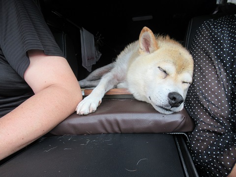 帰りの様子旅行記の続きです。今日は旅行記最終です。帰りの様子を。ゴンは疲れてグッスリ。ケンタッキーで夕食をテイクアウト。コーラは帰りながら飲みました。いつもここを通るとお散歩休憩をするところ。御浜町のヤシの木広場です。七里御浜の一角にあります。海の景色が綺麗。いい雰囲気の公園です。そして、車は紀北町へ。「道の駅マンボウ」でさらにお散歩休憩。ここにも広い芝生の公園があります。遊具も。そして、帰宅。この日の夕食はケンタッキー。ケンタッキーはゴンも大好物。いつもゴンにもおすそ分けをします。ガツガツです。夕食を食べたらグッスリ。ゴン、お疲れ様。これで南紀白浜編は終了です。見ていただいてありがとうございました。まだまだ旅行記溜まっています。またすぐに新たな旅行記をアップしますね。ではまた
