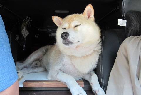 道の駅 美並で宿泊旅行記の続きです。日帰り温泉に入った後は、車中泊する道の駅へ。「道の駅 みなみ」です。敷地内で軽くオシッコ散歩をして車中泊。ゴンもグッスリでした。翌日の朝です。ゴン、おはよう。道の駅の敷地内をお散歩。河川敷に降りてみました。いい感じに芝生があって、お散歩にGOODでした。道の駅 美並の地図。朝早くからたくさんの車が利用していました。道の駅の中。売店の方はまだ開いていませんでした。ここで朝食を。実は前日「丸亀製麺」のうどん弁当を買ってきて、冷蔵庫に入れていました。朝食は丸亀製麺のうどん弁当。美味しかった~。あとはサラダと、前日の夕食の残りで。旅行記は今日はここまで。明日に続きます。