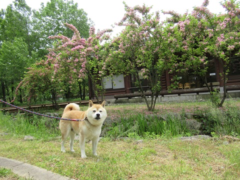 今日のお散歩今日はお父さんが歯医者で、松阪市に買い物に行きたかったので私も同乗。ゴンも連れて行きました。歯医者の後、買い物に行く前、いつも松阪方面に行くときに立ち寄る「のびのびパーク天啓」へ。本当はここの前に1か所別の公園に寄ったのですが、ワンコのお散歩が禁止で残念。結局いつものここへ。野外授業かな?小学生がリュックを下げて集まっていて、先生がお話をされていました。いつも池の周りを1周するのですが、今回は芝生広場の方にやってきました。こちらが公園の地図。駐車場にワンちゃん発見。でも近くに飼い主さんの姿はなく。タイヤのホイルの穴に輪を通して、そこにリードを繋いでいました。きっと車の中に乗せておくと暑くなるので、外に縛っておいたのですね。お利口なワンちゃんだからできるのでしょう。全然吠えたりしないでおとなしかったです。奇麗に整備された芝生が広々。芝生広場を1周します。途中ツツジが綺麗に咲いていました。約30分ほど歩いてお散歩終了。この後買い物のはしごをして、最後に最近出来た激安スーパーへ。いつものように夕食用にお弁当を。今晩の我が家の夕食。お父さんは380円弁当から「ゴロゴロ野菜の酢鶏弁当」を。私は250円弁当から「チーズインハンバーグ弁当」を。デザートに大福を。チーズインハンバーグ弁当、チーズインハンバーグが2つも。味も美味しい~。これで250円はコスパいいです。私は380円弁当はご飯の量が多くて。250円弁当がちょうどいいです。昨日はこどもの日ということで、テレビで柏餅が映っていて、柏餅が食べたかったんだけど、売っていなくて。代わりに大福を。大福、甘さ控えめで、柔らかくて美味しかった~。