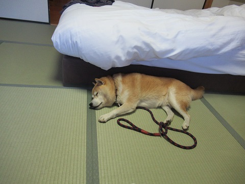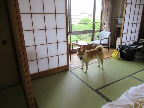プライベートドッグラン付きルーム今日から新たな旅行記を開始します。行先は毎度おなじみ、松阪わんわんパラダイスです。近場で、温泉で、わんこOKのところだと、いつも同じところになってしまいますが、やっぱりここが一番ベストかな。行ったのは11月末。相変わらず旅行記、半年遅れです。季節外れの画像が出てきますがご了承ください。では出発。今回は尾鷲市に午前中に行く用があって、遠回りですが先に尾鷲市へ。熊野古道センター前の公園でお散歩です。ここは広い芝生で、尾鷲市に来た時は時々利用します。尾鷲桧で作られたベンチ。ここでは軽くのお散歩でした。そして、ノンストップで松阪わんわんパラダイスへ。中に入る前に軽くオシッコ散歩。ロビー。売店。チェックインを済ませ部屋へ。今回も1階のプライベートドッグラン付きルームです。和室にベッドのお部屋。ここに今回も3連泊します。広縁。そして、プライベートドッグラン。ゴンは入ってすぐドッグランへ。そんなに広いドッグランではないので、ウロウロするだけです。でも自由に動けるのでゴンにはいいかな。洗面・バス・トイレ。 ケージもあります。お父さんに甘えっこ。一緒にお泊り、嬉しいね。旅行記は今日はここまで。明日に続きます。