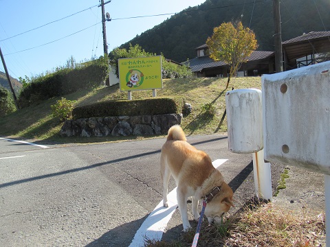 熊野古道へ旅行記の続きです。法泉寺の大銀杏を見た後、次に向かったのは「野中の一方杉」。ここもブログ友の「ちゃぴともにたん」さんが行っていて、写真の紅葉が綺麗で、いいところだったので。途中にあった「野中の清水」。ここの水は名水で、熊野古道を歩く人はここで喉を潤したのだそう。駐車場に車を停めて、熊野古道を歩きます。熊野古道 野中伝馬所跡を通ります。紅葉が綺麗なところに到着。紅葉をバックに。ここは熊野古道中辺路です。茶屋があり、ここの雰囲気がいい感じ。とがの木茶屋。お茶屋さんだと思って、ここで休憩しようと、何か飲み物を、と思ったら、ここにいらっしゃった方がお茶を出してくれました。ここは熊野古道を歩く人のための観光案内所で、お茶は無料サービス。有難いですね。この観光案内の方のお宅でも柴犬を飼っているとかで、柴犬の話に盛り上がってしまって、けっこう長居してしまいました。話が盛り上がっていたので、お父さんとゴンを置いて、私だけ近くの「継桜王子」へ行ってみることに。「継桜王子」の鳥居近くにあるこの杉の木の大木群を「一方杉」といいます。木の枝が太陽の方向の一方にだけ出ているんです。分かるかな?樹齢800年のものが8本あるのだそう。この一方杉の枝の向きの先には「熊野那智大社」があるんですって。とがの木茶屋の観光案内の方に色々説明してもらいました。では「継桜王子」へ。継桜王子の説明。熊野古道には九十九の王子社がありそのひとつ。この王子は若一王子権現とも言われ、野中の氏神とされています。こういう祠がありました。ここにも牛馬童子像が。旅行記は今日はここまで。次はこの日宿泊のお宿に向かいます。