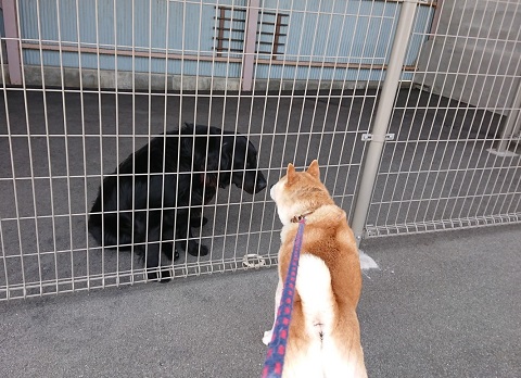 レオくんちに寄り道先ほど今日2回目のお散歩に行ってきました。今日は快晴でいいお天気。なので暑かった~。ただいまの気温25度です。いつものお散歩コースなので代わり映えはないんだけど、帰る途中でレオくんちの前を通るのですが、レオくんが柵の中からこちらを見ていたので、ちょっとご挨拶を。レオくん、こんにちは♪男の子同士なので大丈夫かな?と不安に思いつつも、最初のうちはお互い柵越しに鼻と鼻を付けてご挨拶。上手にご挨拶できました~、と言いたいところですが、最後の最後でゴンが、ガウッって。レオくんビックリしていました。レオくんごめんね~。お散歩のあとは、お庭の日陰のコンクリートでクールダウン。暑かったね。今はまだギリギリ大丈夫ですが、もっと暑くなったらお散歩も遅い時間にしないといけませんね。動物病院からハガキが来ました。そろそろお薬買いに行かないと。