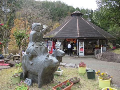 宝泉寺へ旅行記の続きです。熊野市にもう1泊するのですが、3時のチェックインまで時間があるので、観光に向かうことに。この時は秋でちょうど見頃の時期でもあったので、宝泉寺の大銀杏を見に行きました。熊野市街からは1時間半くらいかかります。ブログ友の「ちゃぴともにたん」さんが行っていて、ブログにアップしているのを見て、行ってみたい、と思ったので。途中の「道の駅 熊野古道中辺路」でトイレ休憩。敷地内には「牛馬童子像(ぎゅうばどうじぞう)」が。牛と馬にまたがる僧服の人物は花山法皇で、熊野詣の旅姿であったとされています。これはレプリカで、本物の像はここから熊野古道に入り、少し歩いたところにあるようです。そして、さらにしばらく車を走らせると、見えてきました、大銀杏。駐車場で。すごく大きく、圧巻です。それにちょうど見頃の黄金色で綺麗です。いろんな角度から。宝泉寺前の看板。樹齢約400年。幹の周りは約6m、高さは約22mあるのだそう。まさに絶好の紅葉スポット。素晴らしくて感動でした。たくさんの人が見に来ていました。たくさんのワンちゃん連れも。記念に落ち葉を1枚拾ってきました。ゴンもクンクン。帰りに「近露(ちかつゆ)」の公園でお散歩。以前はこの近くにドライブインがあったのですが、コロナ禍の影響か、閉鎖していました。小さな公園ですが。ここの紅葉も綺麗でした。旅行記は今日はここまで。次ももう1か所観光します。