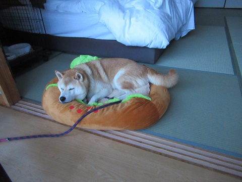 ドッグランへ旅行記の続きです。チェックインをして、少し部屋で休んでからドッグランへ。部屋にもドッグランはあるものの、やっぱり広いドッグランで走らせてあげたくて。小型犬用のドッグランでは2匹のワンちゃんが遊んでいました。私たちはフリー用のドッグランへ。入るとすぐに走り出しました。走っている写真は難しい~。ちょっとぶれてますねぇ。かなりしばらく走っていました。こんなに走るのは珍しいです。覗きに来てくれたワンちゃんとご挨拶。いっぱい走って大満足のゴンです。楽しかったね。水をゴクゴク。実はこの日ランチを食べ損ねてしまって、尾鷲でマクドナルドでこちらを買ったのですが、このうちのチキンナゲットをつまむことに。あとは翌日の朝食用に。おにぎりを家で作ってきていたので、こちらを遅いランチでいただきました。ゴンが見てますねぇ。おすそ分けもらっていました。そして、この日の夕食は、お宿は素泊まりでの利用なので、尾鷲市の「すき家」で買ってきました。私は牛丼、お父さんは高菜明太マヨの牛丼。私は色々トッピングするより、普通の牛丼の方が好きです。ゴンはここでウトウト。せっかくベッド持ってきているのに、ベッドに寝ないのか?と思っていたら・・・、気が付いたらちゃんとベッドに移動していました。ここで朝までグッスリです。こんな感じで1日目は更けていきました。旅行記は今日はここまで。明日に続きます。