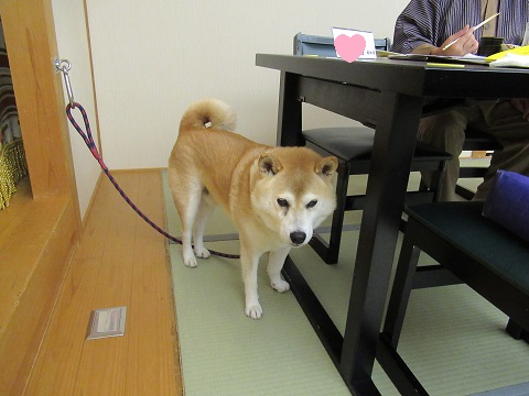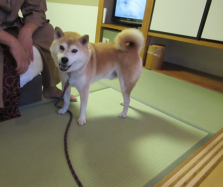 お食事処 桔梗旅行記の続きです。旅行3泊目の夕食です。2泊目の時はゴンが寝ていたので連れて行かなかったのですが、3泊目はゴンも連れて。場所は2泊目と同じ「お食事処 桔梗」。お隣の席に柴ちゃんが。女の子なのでゴンより一回り小さいです。大人しくて可愛い~。今回も「スメール懐石」。でもメニューは少し変わっていました。お品書き順に。食前酒の柚子酒。前菜3種盛り。お造り。揚げ物。南瓜豆腐玄米揚げ。焼き物。鰆の柚子味噌朴葉焼き。蒸し物。三重県産健康豚の角煮。酢の物。秋刀魚の酢〆。台物。栗豚のしゃぶしゃぶ。ライス・漬物・味噌汁。ライスはお代わりOK。今回もライスお代わりしました。デザート。林檎ゼリー。食べている間ゴンは、ウトウトでした。大人しくてお利口でしたよ。実は今回の2泊目、3泊目のこの懐石料理、わんパラからのプレゼントです。わんわんパラダイスの会社、セラヴィリゾート泉郷、創業50周年ということで、アプリ会員全員にかな?それぞれ2名分プレゼントでした。私たちは2人ともアプリ会員なので、2名分×2いただけました。今回ここに泊まりに来たのもこのプレゼントがあったから。今回もお得にお泊りです。寝る前のアイスデザート。2人ともバニラでした。やっぱり大内山アイスは濃厚で美味しい~。 こんな感じで3泊目も更けていきました。ゴンはマイベッドでご就寝。朝までグッスリでした。旅行記は今日はここまで。明日は旅行記最終です。