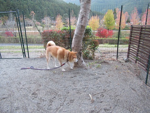 松阪わんパラでのお散歩旅行記の続きです。松阪わんわんパラダイスでの3日目の朝です。プライベートドッグランにて。小さなドッグランですが、自由に動けるのでゴンにはよかったかも。朝散歩はお宿周辺で。同じ日にお泊りだったワンちゃんに遭遇。この時はお宿周辺は紅葉が綺麗でした。川向いの公園へ。公園の一角にあるアジリティドッグラン。ドッグランの中へ。ウロウロしてドッグラン終了~。ホテルに戻り、ホテル前のドッグランにいたワンちゃん。垣根越しにご挨拶。可愛いですね。この日の朝食です。スープパスタとハンバーガーで。この日はホテルで温泉に入ったり、部屋でまったり過ごしたり、周辺をお散歩したり、のんびりと。綺麗な紅葉をバックに。旅行記は今日はここまで。明日に続きます。