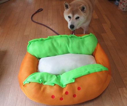 ちょっと早いけど・・・今月は、もうすぐゴンの誕生日。24日でまだ20日早いのですが、先日、買い物に行った時にたまたま見つけてしまって、ゴンのバースデープレゼントにと買ってきました。ベッドはたくさんあるのですが、またまたベッドを。実はこれ、お気に入りで使っているホットドッグベッドの夏バージョン。大きさも形状も全く同じです。でも生地がメッシュで、きっと涼しいかな。今回はお披露目だけ。誕生日におろしてあげようと思うのですが、気に入ってくれるかな?写真を撮っていたら、何しているの?というように見に来て、すでに見つかってしまいましたが。