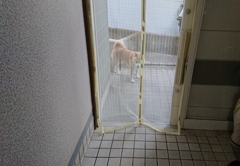 蚊帳カーテン取り付けました先ほど2度目のお散歩から帰ってきました。今日は朝から曇りで、午後から雨予報だったのですが、4時になって降り出しました。2度目のお散歩は3時頃から行って、4時前に帰ってきて、無事雨を回避できました。でも寝るまでにもう1回お散歩行きます。その時は回避できないかな。昨日なのですが、ネットで注文していた「蚊帳カーテン」が届いたので、玄関に取り付けました。もうそろそろ蚊が出始めていて、ゴンがお庭へ出入りするのに玄関を開けておくので、蚊が入らないための対策です。これ、昨年から使っているのですが、昨年は黒を買ったので、今年は白を。でもこれが失敗。真ん中の部分に磁石が付いているのですが、これが黒いので、白だと透けて見えて、ちょっと残念。昨年は黒だったので気が付きませんでした。出入りするときは真ん中の磁石を離して開けるのですが、ゴンはそれが解らず、ここから出入りします。まぁ、自然と閉まってくれるので、良しとしていますが。これ、蚊が入らないし、風が入って涼しいし、買ってよかったと思っています。送料込み1300円くらいでした。お散歩コースの途中のお宅で咲いていて、楽しませてもらっています。牡丹だと思って、「綺麗な牡丹やね~」って声を掛けたら、「牡丹やなくて、芍薬やで」って。花の名前って難しいですね。