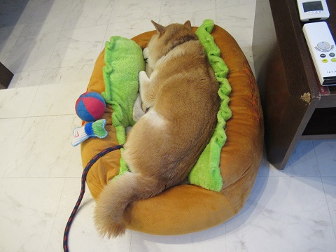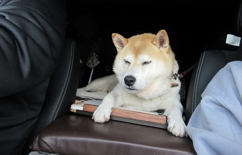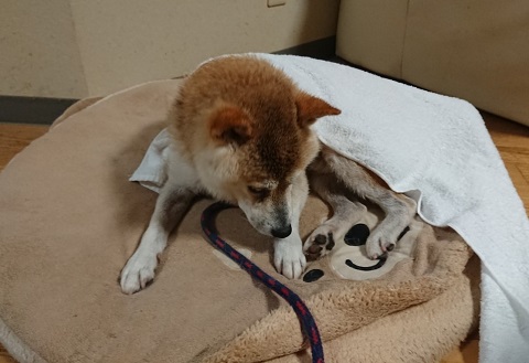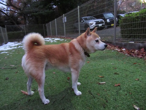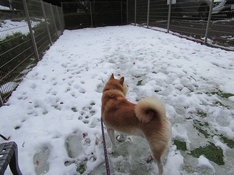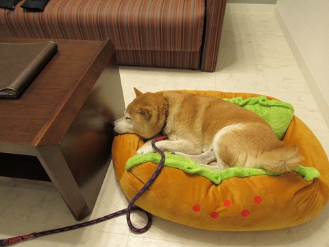 ホテルでのご様子旅行記の続きです。夕食の後のまったりタイム。寝る前の夜散歩へ。お宿の周辺を軽く。寝る前の歯磨きガム。ゴンは自分のベッドでご就寝です。いつの間にかソファーに移動。お父さんにくっついて。そして、2日目の朝です。2日目の朝散歩はまだ薄暗いうちに軽く。私たちの朝食はサンドイッチを。朝食後にも再度お散歩へ。まだまだ雪が積もっていて、慣れないので歩きづらくて、お散歩も軽くになります。ドッグランへ。雪だと走りづらいねぇ。ザックザックと走っていました。ドッグランから出て、もう少し歩きました。雪にゴンの肉球の跡が。お散歩のあとはウトウト。11時くらいまで部屋でまったりしていました。旅行記は今日はここまで。明日に続きます。