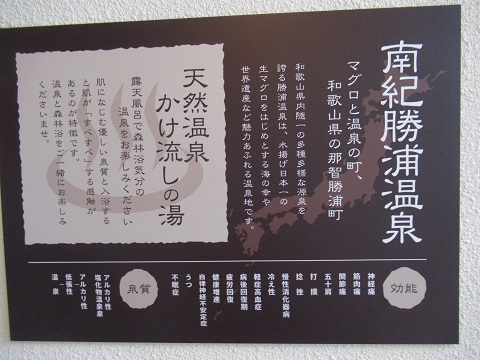 南紀勝浦へ今日から新たな旅行記を開始します。行先は和歌山県の南紀勝浦。2泊3日の旅行です。行ったのは1月。半年遅れの旅行記、季節外れの画像が出てきますがご了承ください。では、出発。ノンストップで南紀勝浦に到着。到着してすぐにゴンのお散歩へ。南紀勝浦に行った時はいつも利用する公園、「ブルービーチ那智」へ。海水浴場沿いにある公園です。テーブルと椅子もあり、景色を見ながらゆっくりするのにいいところです。この景色、ブルービーチという名のとおり、海がブルー。縦に長いので、端から端まで、ゆっくりお散歩しました。そして、1泊目のお宿へ。「越之湯」です。ここは何度か利用しています。最近リフォームオープンして、リフォームしてからは2度目。お宿の前には芝生があるので、夜散歩でちょっとオシッコさせるのに便利でした。残念ながらこのお宿はわんこ同伴ルームはなく、ゴンは車中泊。私たちだけ中に入ります。ロビー。ロビーに畳の休憩所も。最新式のマッサージ機。テラス。テラスに足湯が。売店。宿泊棟。私たちはこちら側に宿泊です。1階のコミックコーナー。2階のコミックコーナー。ゲームコーナー。では部屋へ。入ってすぐに3畳の前室。10畳の和室。もうすでにお布団が敷かれていました。洗面・バス・トイレ。 部屋の洗面所のお湯とバスのお湯は温泉です。温泉分析書が貼ってありました。広縁。 部屋からの景色。広さは十分だし、景色はいいし、落ち着いて過ごせました。旅行記は今日はここまで。明日に続きます。