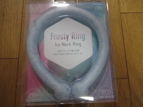 アイスネックリング先日、お父さんがネットで見つけて、これ、お散歩にいいんじゃないか、と、ポチッてくれました。アイスネックリングです。これ、結露しないので、そのまま首に巻いても濡れることはないし、何度でも繰り返し使えるし、冷たさはある程度持続するし、ほんとお散歩に付けていくのにいいのでは。冷凍庫だと5分、冷蔵庫だと20分で固まるんですって。早速つけてみたけど、冷たくて気持ちいい~。首が冷えると、一気に涼しく感じます。これから暑さ本番になるし、毎回付けてお散歩に行こうと思います。これから暑くなっても、ちょっとは涼しくお散歩できるかな?