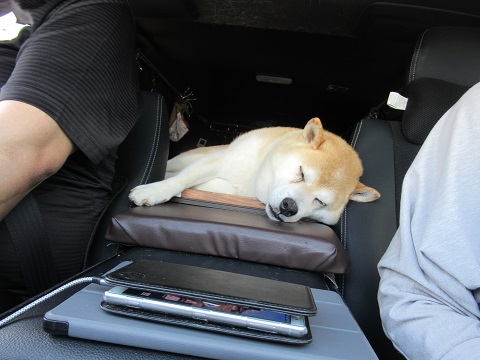 帰りの様子旅行記の続きです。今日は山梨への旅行記最終です。帰途に就いているところです。「道の駅 もっくる新城」。ここで休憩のため立ち寄りました。ここに寄ったのはドッグランがあるから。でも残念ながら、鍵がかけられていました。利用時間は10時から16時まで。それ以外は鍵をかけているようです。行った時は16時を超えていて、残念。でもよく見ると、小型犬ドッグランと書かれていて、10㎏以下、となっていました。開いていても中型犬は利用できなかったのかも。ドッグラン周辺をお散歩しました。ここで夕食です。スーパーで買ったタケノコご飯と焼きそば。そして、もう1か所休憩。「ネオパーサ岡崎」で。高速のSAのドッグランは24時間。明るいし、遊ぶことが出来ました。ウロウロ。ウロウロ。クンクン。クンクン。クンクンウロウロでドッグラン終了~。その後はノンストップで帰宅。ネオパーサ岡崎で車中泊してもよかったんだけど、少し仮眠して帰りました。帰った時は12時過ぎていました。ゴンはバタンキュー。お疲れ様。これで山梨への旅行記終了です。見ていただいてありがとうございました。まだまだ旅行記が溜まっています。すぐに新たな旅行記をUPしますね。ではまた