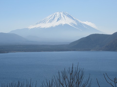 吉田うどん旅行記の続きです。車は富士吉田市を目指しているのですが、その途中で富士山が綺麗に見える場所があるということで、立ち寄りました。本栖湖展望公園です。この景色、皆さん見覚えありませんか?誰もが一度は目にしているはず。正解は千円札です。千円札の富士山と全く同じに撮りました。残念ながら逆さ富士は撮れていませんが。この富士山、ここからの景色なのだそうですよ。湖と富士山のコラボがすごく綺麗。松と富士山のコラボもいい感じです。そして、この時は4月、桜が満開の時期でもありました。桜と富士山のコラボに挑戦。いい感じに撮れました。もっと桜を入れたかったのですが、これが精一杯でした。綺麗な富士山を堪能し、次へ向かいます。向かったのはこちら。吉田うどんの人気店、「麺許皆伝」へ。ここでランチをいただきます。満席で、待っている間に窓から店内を。15分ほど待ったかな。こういう席に案内されました。店内にはサイン色紙がいっぱい。芸能人もけっこう来ているようです。メニューはこちら。温かいうどん。冷たいうどん。私は肉うどんを大盛りで。500円+大盛り100円はお安い。キャベツが入っています。うどんにキャベツって珍しいですね。お父さんはよくばりうどんを。よくばりうどんとは、肉、ワカメ、キツネ、ちく天が入ります。ちく天は別皿できました。650円。テーブルの天かすは入れ放題です。タップリ入れました。お父さんも天かすを。お父さん、大盛りにしなかったのか、って?替え玉ができたので、替え玉にしました。この方が麺が伸びなくていいかも。替え玉も100円です。吉田うどん、初めて食べたけど、麺がコシがあって美味しいです。人気なのが納得でした。食事中ゴンは車で待機。お待たせゴン。旅行記は今日はここまで。明日に続きます。