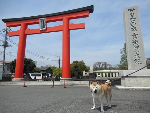 富士山本宮浅間大社旅行記の続きです。もう1か所寄り道します。「富士山本宮 浅間大社」へ。⛩「駿河国一の宮」にあたります。全国1300余ある浅間神社の総本宮。「富士山の気のエネルギーをもらえる神社」とも言われています。富士山が綺麗に見えます。ズームで。では鳥居をくぐります。ワンコは手水舎まではOKです。そこまでゴンと行きましょう。こういう参道です。鳥居の向こうに朱色の楼門。毎年5月と11月には流鏑馬(やぶさめ)祭りが行われるとか。輪橋。楼門。楼門の前に鉾立石。手水舎。ゴンはここまでです。ここからはお父さんと交代で参拝しました。拝殿。本殿は拝殿の奥になります。御祭神は「木花之佐久夜毘売命(このはなのさくやひめのみこと)」。富士山の噴火を鎮めた女神さまです。彫刻が素晴らしいです。参拝を済ませお父さんと交代。待っている間に「湧玉池」へ。ここはかつて、富士山の登山者が身を清めるために禊をした場所。「富士山御霊水」と書かれていました。この「湧玉池」の場所は「日本の中心」なのだそう。この神社の一番のパワースポットでもあります。池のほとりに藤が綺麗に咲いていました。やってきたワンちゃんとご挨拶。鳥居から覗く富士山。御朱印をいただきました。御朱印をいただいたら、参拝記念のこちら、サービスでした。旅行記は今日はここまで。明日に続きます。