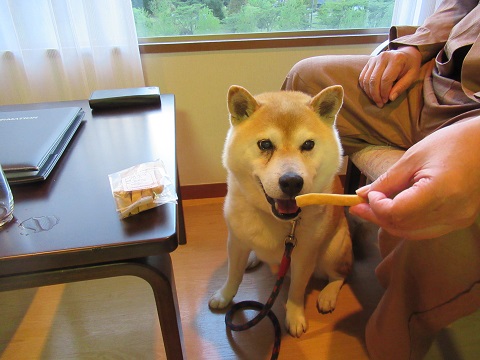 毎度のお宿今日から新たな旅行記を開始します。行先は毎度おなじみの、「松阪わんわんパラダイス」。行ったのは4月末。旅行記、相変わらず5か月遅れです。季節外れの画像が出てきますが、ご了承ください。では出発です。我が家から「松阪わんわんパラダイス」までは車で1時間半くらいです。ノンストップで到着です。中に入る前にドッグラン周辺でオシッコ散歩を。お父さんが先に入ってチェックイン中。私たちも中に入ります。入口看板をバックに。ロビー。わんパラハッピーの看板。ゴンに羽根が生えました~。エレベーターも慣れたものです。廊下。今回は和モダンベッドルーム。畳にベッドのお部屋です。ここに3連泊します。広縁。ケージとワンコグッズも揃っています。バス・トイレ。 窓からの景色。お茶・コーヒー・ミネラルウォーターのサービス。チェックインの時にゴンにもおやついただきました。ここはもう何度も泊まっているので、勝手がわかっているし、スタッフさんとも和気あいあいだし。ちょっとゴンと温泉行きたい、と思った時はここです。近場でのんびり、にピッタリのお宿です。旅行記は今日はここまで。明日に続きます。