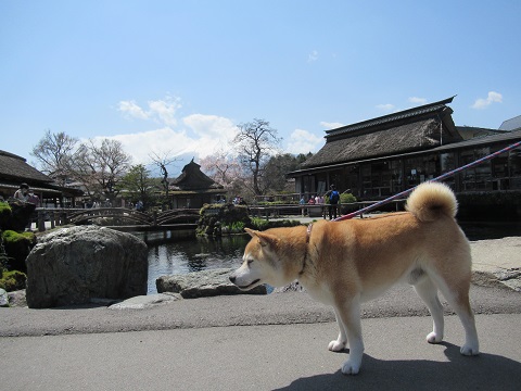 湧池周辺旅行記の続きです。車は山梨県の忍野村にやってきました。今回の旅行の目的地のひとつ、「忍野八海」へ。以前テレビで紹介されているのを見て、行ってみたいと思っていたのでした。駐車場のところにあるお土産屋さん。ここからの富士山の景色。ちょっと雲が多くて残念。湧池と富士山。いい雰囲気です。忍野八海には8つの池があるのですが、この湧池が一番大きくて有名。「日本名水百選地」の表示が。池を囲む建物も趣があります。柴ちゃんと遭遇。上手にご挨拶できました。「湧き出る 富士山の雪どけ水」となっていました。だから湧池というのかな?池には鯉がたくさん。金色や水色の鯉がいたのでパチリ。ここは世界遺産富士山の構成資産の一部と認定されています。水車をバックに。桜もいい感じ。ここの桜も満開。また別の水車で。長くなるので一旦ここまで。続きは午後にアップします。