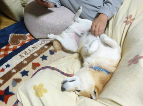 お腹をナデナデされてうっとりウトウトのゴンでした~。