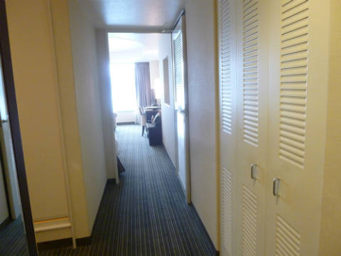 入ってすぐ右に大きなクローゼット、左が水回りです。
