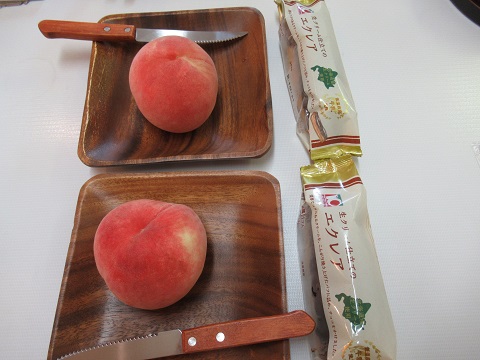 デザートは紀の川の産直で買った桃とエクレア。🍑