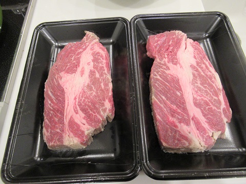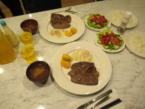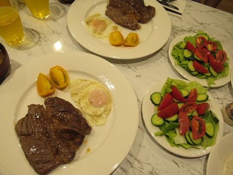 ステーキ肉を買ってきて、ステーキディナーです。