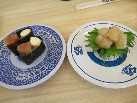 たらマヨ軍艦と大盛り貝柱にぎり。
