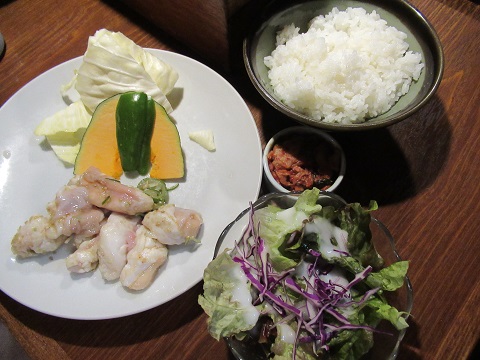 この塩ホルモン、ニンニク醤油で食べるのですが、
