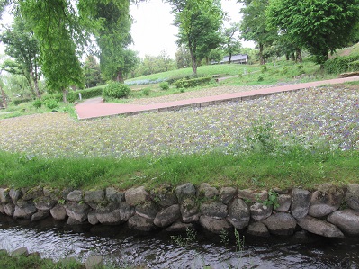 小さな川向いにも公園があります。